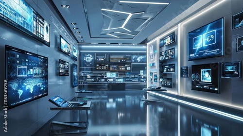 Futuristic Control Room Filled With Advanced Technology Screens