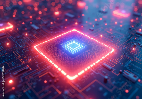 Futuristic CPU on a glowing microcircuit