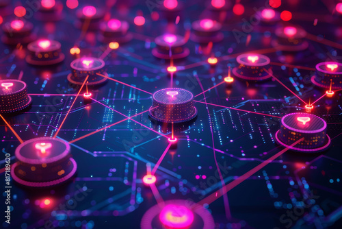 Futuristic Cyber Network with Glowing Data Nodes and Interconnected Systems in High-Tech Environment