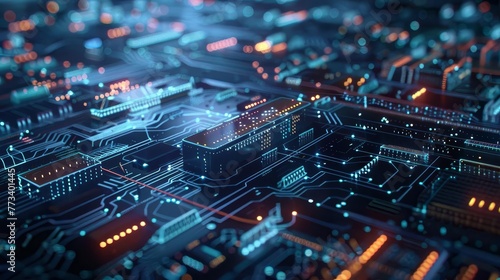 Futuristic cyber technology concept, digital data network connecting smart devices in abstract space, 3D illustration