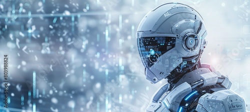 Futuristic cyborg robot on virtual copy space background. Generative AI technology.