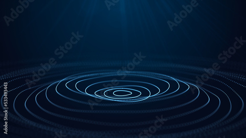 Futuristic dark background. The wave effect of digital particles. Big data. Illustration of technologies and artificial intelligence. The effect of particle oscillation. 3D rendering.