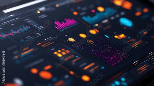 Futuristic dashboard with vibrant data visualizations on a digital screen.
