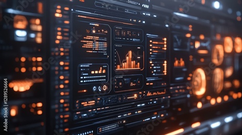 Futuristic data analytics dashboard with digital interface and graphs