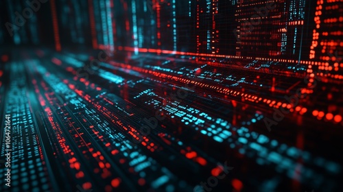Futuristic data energy grid with contrasting red and blue graphics visualizing data flow in a high-tech environment