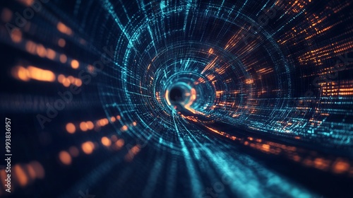 Futuristic Data Flow: V-Shaped Tunnel Concept for Virtual Space. AI generated illustration