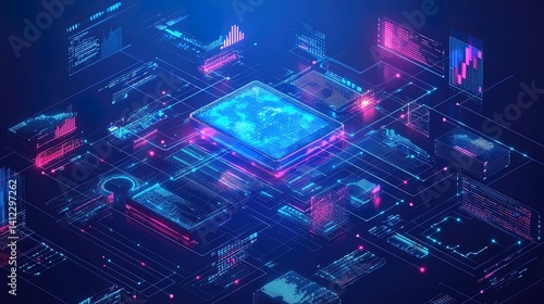 Futuristic Data Processing and Digital Technology Concept