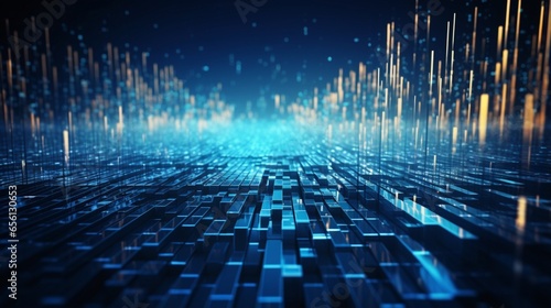 Futuristic data stream 3d illustration. Data transfer technology. Cyberpunk, Big data and cybersecurity. Cyberspace, blockchain transactions. Abstract technological background