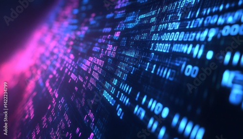 Futuristic data stream visualization with binary code, a digital perspective