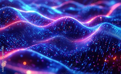 Futuristic Data Visualization in Cyberpunk Style with Neon Waves and Dynamic Composition
