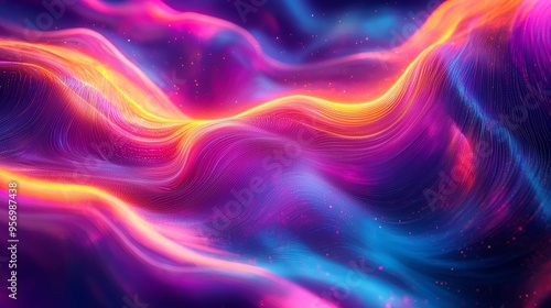 Futuristic data visualization with glowing blue lines and particles, forming a dynamic digital wave.