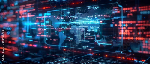 Futuristic design with digital data patterns, computer graphics, and business concepts illuminated by dynamic light textures