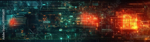 Futuristic digital background with vibrant glowing elements and complex patterns, ideal for technology or innovation themes.