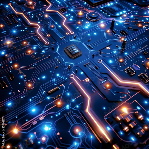 Futuristic Digital Board with Interconnected Systems in Sleek Blue Design