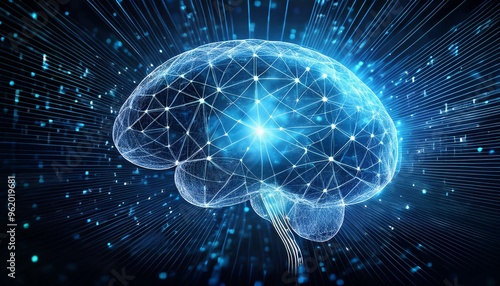 Futuristic Digital Brain with AI Connections Visualizing Deep Learning and Artificial Intelligence in a Cybernetic Cloud Environment During Digital Transformation