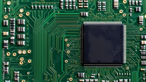 Futuristic Digital Circuit Board Texture with Clean Central Space for Copy