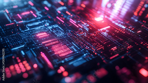 Futuristic Digital Circuitry Glowing Red and Blue Abstract Technology Network Data Flow