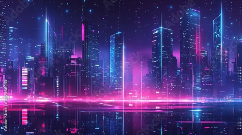 Futuristic Digital Cityscape with Glowing Lights at Night