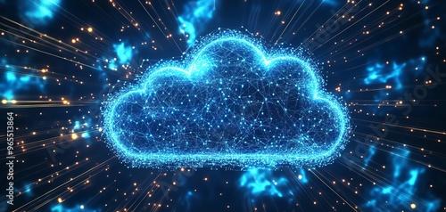 Futuristic digital cloud computing concept. Networking and data storage technology for modern business solutions and innovation.