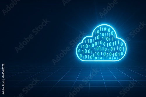 Futuristic Digital Cloud Computing Concept with Binary Code on Blue Grid Background