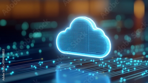 Futuristic Digital Cloud Icon Surrounded by Data Points Representing Technology and Connectivity