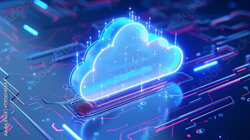 Futuristic digital cloud technology concept with glowing data connections on circuit board background