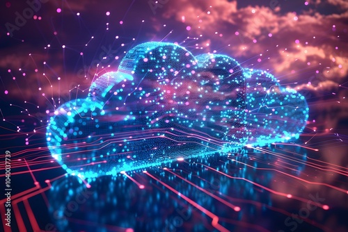 Futuristic Digital Cloud with Glowing Connections and Circuit Patterns