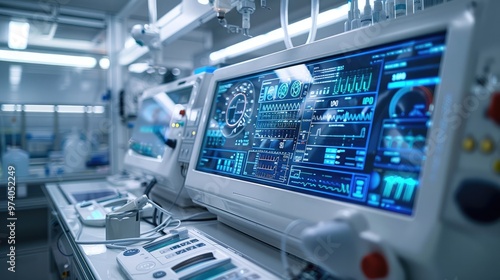 Futuristic digital dashboard with advanced data visualization and analytics technology showing real time information statistics and intelligence on a sleek high tech computer interface