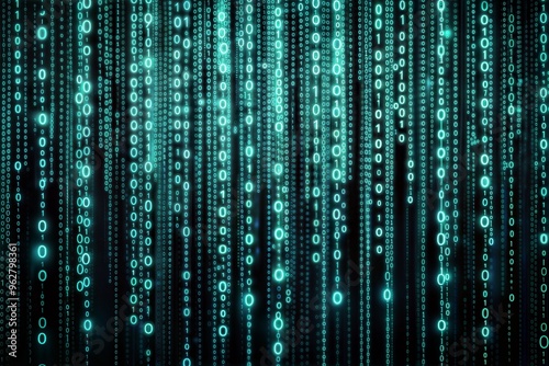 Futuristic digital data stream falling binary code green light pattern