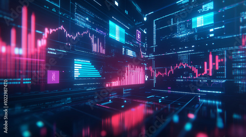 Futuristic Digital Data Visualization Interface with Charts and Graphs