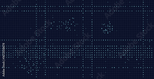 Futuristic digital grid background with blue dots and lines on dark theme.