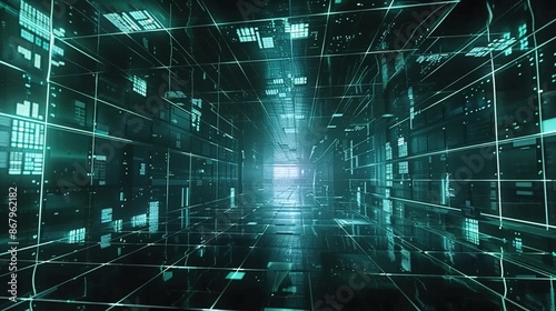 Futuristic Digital Grid Interface Visualization with Interconnected Squares