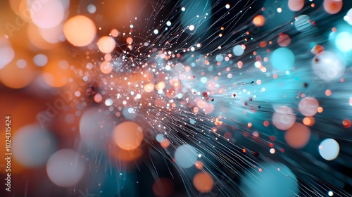 Futuristic digital grid with a mesmerizing array of bokeh lights and network lines creating a visually striking representation of cloud computing future internet connectivity