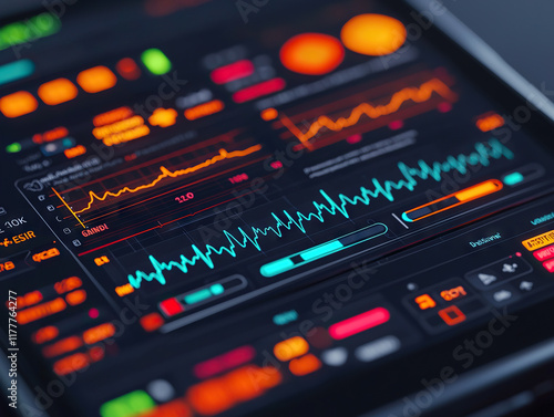 futuristic digital health interface displaying real time analytics with vibrant graphs and metrics