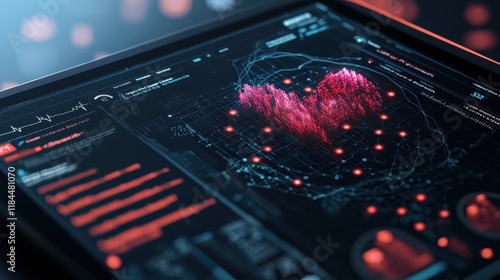 Futuristic Digital Heart Visualization on Tech Interface Dashboard Showing Intelligence and Network Connections
