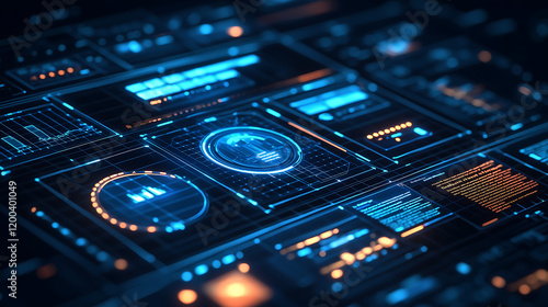 Futuristic Digital Interface Data Analytics, Graphs, and System Monitoring