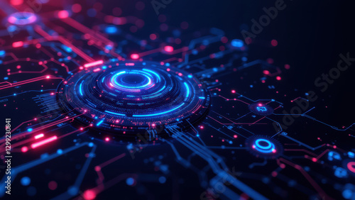 Futuristic digital interface representing advanced IT systems or cloud services.