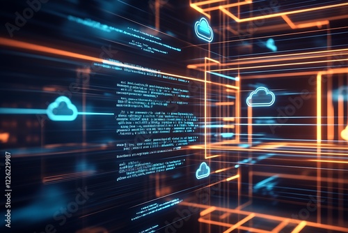 Futuristic Digital Interface with Cloud Computing and Neon Code : Generative AI
