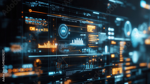 Futuristic digital interface with data visualization, graphs, and analytics for business planning in 2025