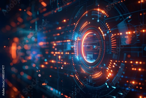 Futuristic Digital Interface with Glowing Orange and Blue Circuitry