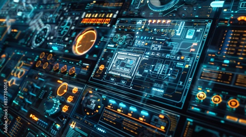 Futuristic Digital Interface with Interactive Elements and Copyspace for Text