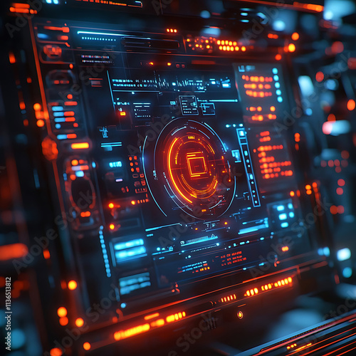 Futuristic Digital Interface with Orange and Blue Glows