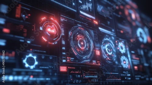 Futuristic Digital Interface with Red and Blue Glowing Elements