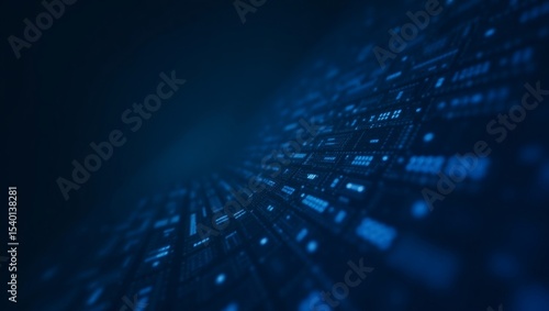futuristic digital landscape with a blue glow, illustrating advanced technology and data flow, with subtle details