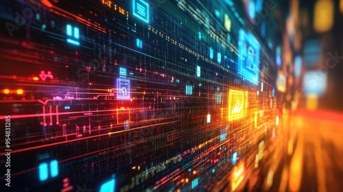 Futuristic Digital Landscape with Vibrant Neon Patterns