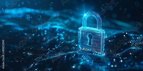 Futuristic Digital Lock Symbol in Glowing Blue