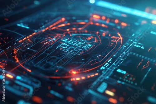 Futuristic Digital Map Interface with Glowing Elements and Patterns