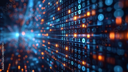 Futuristic Digital Matrix: Abstract Background with Binary Code and AI Algorithms