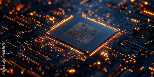 Futuristic Digital Network Circuit Board in Blue and Black