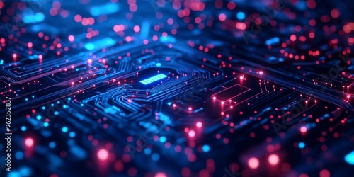 Futuristic Digital Network Circuit Board in Blue and Black